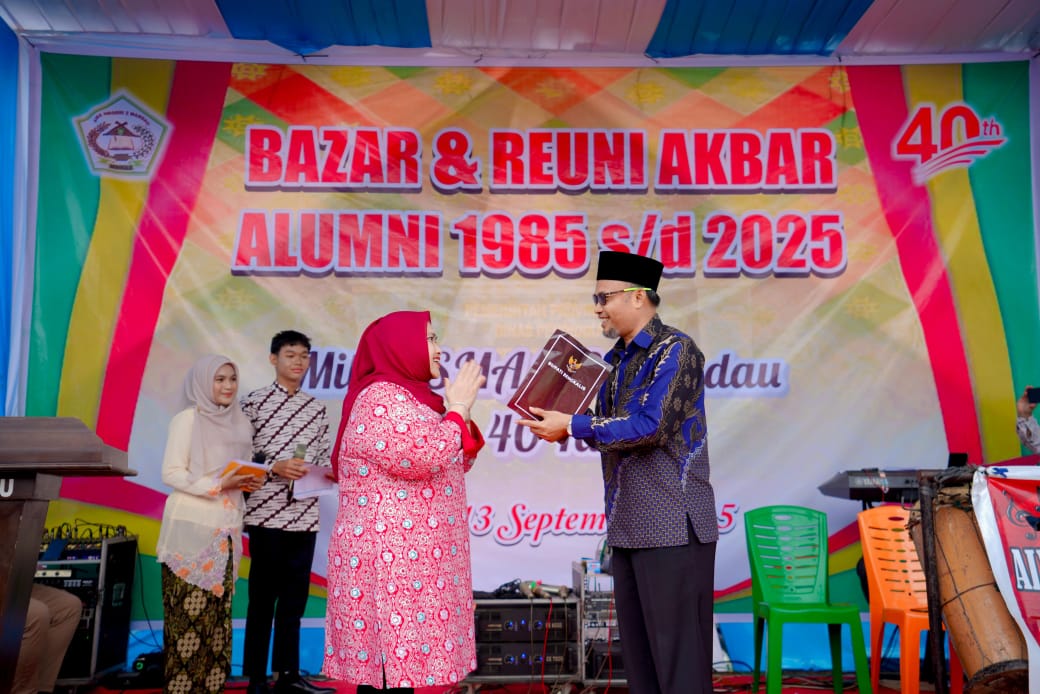 MANDAU - Bupati Kasmarni hadir langsung di SMAN 2 Mandau, Kabupaten Bengkalis untuk menyatukan semangat alumni lintas generasi agar turut serta merevitalisasi fasilitas sekolah yang mulai dimakan usia.